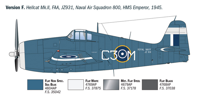 The U.S. Navy carrier-based fighter Grumman F6F-3 Hellcat was introduced in 1943 to replace the older Grumman F4F Wildcat and remained in service until the end of World War II, becoming a key player in the Pacific War. Designed to effectively counter the Japanese Zero, it was equipped with the powerful 2,000-horsepower Pratt & Whitney R-2800 engine, which provided high speed and excellent flight performance. Armed with six 12.7 mm Browning machine guns mounted in the wings, in the hands of trained pilots it proved extremely effective both in air superiority missions to defend the fleet and in close support and ground attack missions. The impressive kill-to-loss ratio demonstrated the operational efficiency of the “Hellcat” design.