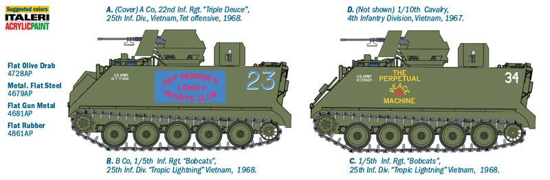 L’M113 è tra i più famosi veicoli trasporto truppe della Storia. Completamente cingolato entrò in servizio nei primi anni ’60 ed è ancora impiegato in numerosi Paesi. Venne utilizzato nel corso della guerra del Vietnam da parte dell’U.S. Army e dai Marines. In grado di trasportare un’intera squadra di fanteria, completamente equipaggiata, dimostrò le sue doti di affidabilità e mobilità nel difficile ambiente operativo del Vietnam caratterizzato da giungle e paludi. Per renderlo più idoneo ai combattimenti venne realizzata la versione ACAV (acronimo che sta per Armoured Cavalry Assault Vehicle) con l'aggiunta di una protezione circolare alla torretta del comandante, dotata di una mitragliatrice M2 da 12,7 mm. e con l'installazione di due mitragliatrici scudate M60 da 7,62 mm. posizionate sui lati del portello posteriore.