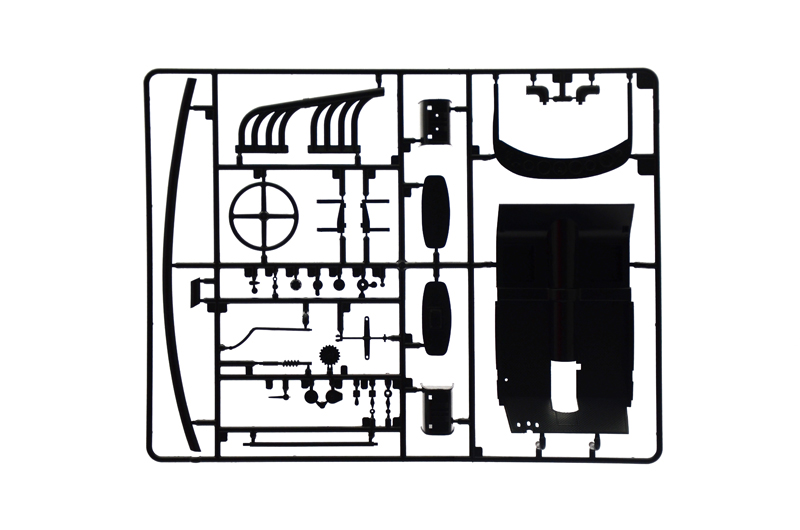 Foglio istruzioni a colori - Ruote sterzanti - Sospensioni Realistiche - Motore altamente dettagliato - Ruote in gomma - 320 parti in plastica - 30 parti cromate - Fotoinciso - Cofano apribile - Viti, tubi e retina in nylon