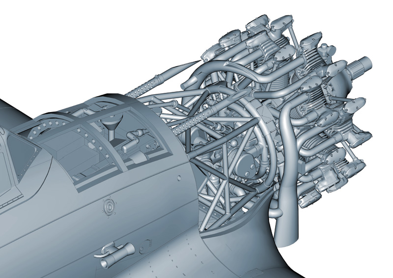 Abitacolo finemente dettagliato con decals 3D - Mascherature per tettuccio e pneumatici - Motore e vano mitragliatrici accuratamente riprodotti - Vano carrelli dettagliato con copertura vani opzionale - Fotoincisi del motore, dell’abitacolo, flaps e dettagli generali - Realistiche incisioni delle pannellature e dei rivetti - Parti mobili delle ali e degli alettoni di coda - Flaps posizionabili, chiusi o aperti - Super decal per 6 versioni - Guida a colori alla colorazione e al montaggio delle decals.